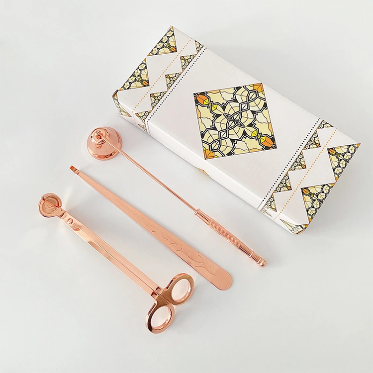 Nanjing FNAT ແມ່ນໂຮງງານຜະລິດຕົ້ນກໍາເນີດຂອງປະເທດຈີນທີ່ມີຄວາມຊ່ຽວຊານໃນດ້ານວັດຖຸດິບທຽນ. ເຄື່ອງມືຕັດທຽນໄຂຂອງພວກເຮົາ (ຊຸດເຄື່ອງມືການດູແລທຽນໄຂ) ເປັນຊຸດ 4 ຊັ້ນທີ່ເຮັດດ້ວຍເຫຼັກສະແຕນເລດຄຸນນະພາບສູງທີ່ມີການຂັດດ້ວຍໄຟຟ້າແລະການຂັດດ້ວຍມື, ມີຢູ່ໃນຄໍາ, ເງິນ, ທອງຄໍາ, ແລະສີດໍາ. ມັນ​ປະ​ກອບ​ມີ wick trimmer​, snuffer ທຽນ​, dipper wick​, ແລະ​ຖາດ​ທຽນ​ໄຂ​. ເຄື່ອງມືຊ່ວຍຕັດ wicks, extinguish flame ໄດ້ຢ່າງປອດໄພ, ແລະສູນກາງ wicks ເພື່ອຫຼຸດຜ່ອນຄວັນຢາສູບ. Elegant, ທົນທານ, ແລະປະຕິບັດໄດ້, ມັນເປັນທີ່ເຫມາະສົມສໍາລັບການເຮັດທຽນໄຂ, ການນໍາໃຊ້ປະຈໍາວັນ, ແລະການຕົກແຕ່ງເຮືອນ.