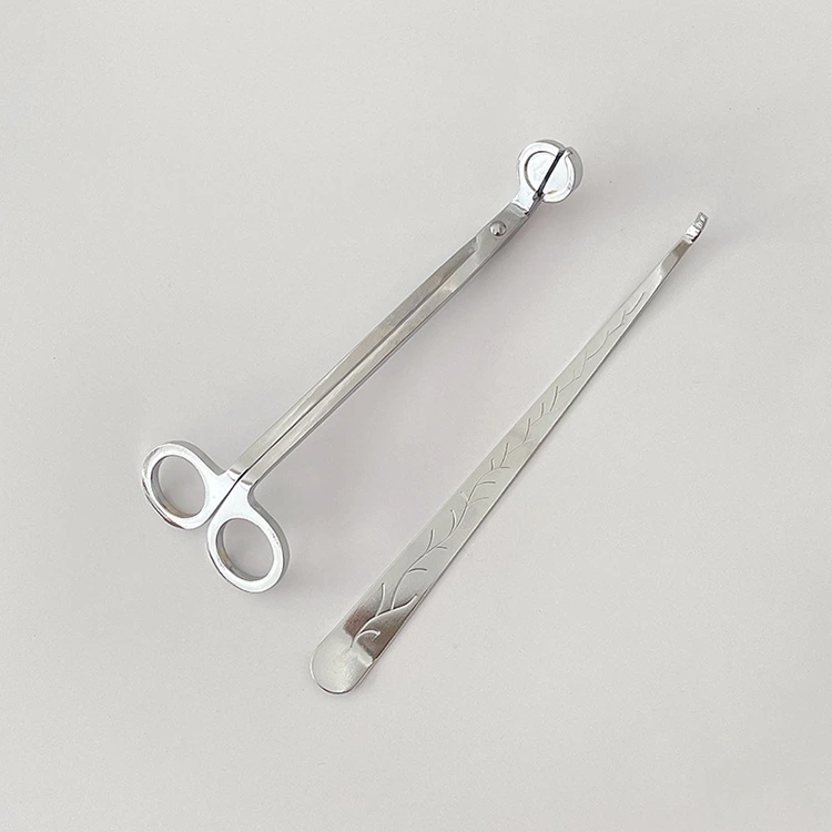 - Wick Trimmer: ປະກອບດ້ວຍແຜ່ນໃບແຫຼມ, ມຸມທີ່ຊັດເຈນ, ເຄື່ອງຕັດ wick ໃຫ້ສະອາດ, ເຖິງແມ່ນວ່າການຕັດໂດຍບໍ່ມີການ fraying ຫຼືທໍາລາຍ wick. ມັນໄດ້ຖືກອອກແບບພິເສດສໍາລັບການຕັດ wick charred ສິ້ນສຸດລົງທັນທີຫຼັງຈາກ flame ໄດ້ extinguished. ການຕັດແຕ່ງຢ່າງເປັນປົກກະຕິແລະຖືກຕ້ອງຈະຊ່ວຍຫຼຸດຜ່ອນຄວັນສີດໍາ, ຫຼຸດຜ່ອນການເກີດຂີ້ເຖົ່າພາຍໃນຖັງທຽນ, ປ້ອງກັນການເຜົາໄຫມ້ຫຼືອຸໂມງທີ່ບໍ່ສະເຫມີກັນ, ແລະຂະຫຍາຍອາຍຸຂອງທຽນໄດ້ຢ່າງຫຼວງຫຼາຍ.